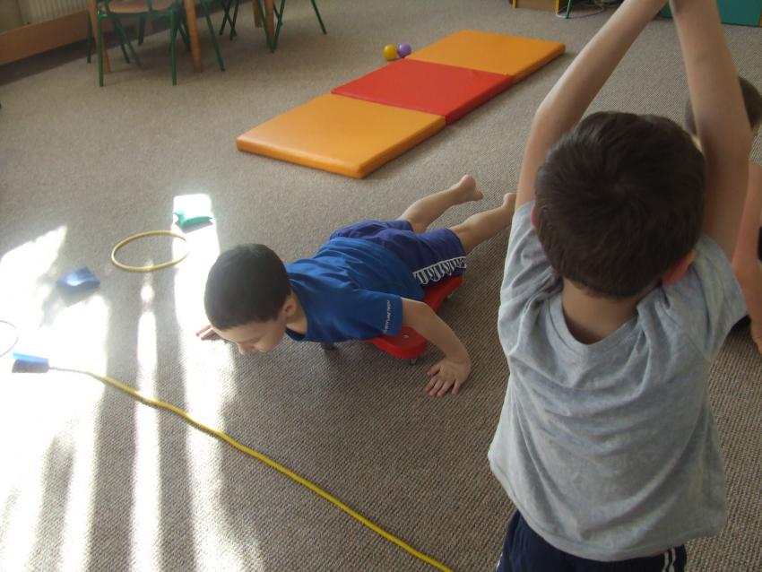 Dzieci podczas zajęć gimnastyki korekcyjnej.