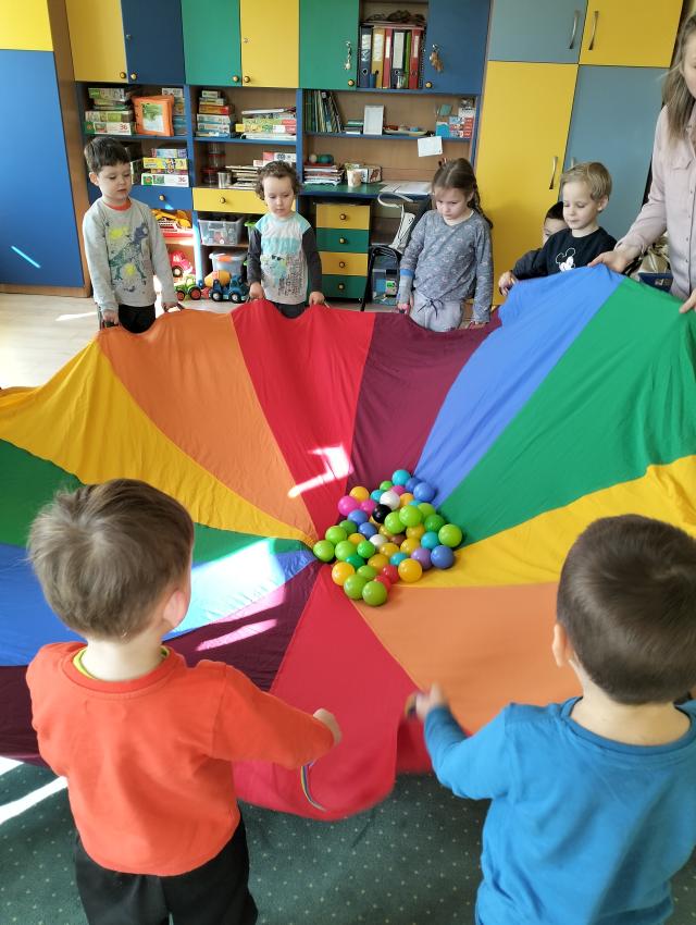 Zabawy ruchowe z chustą Klanza - Gr. Misie
