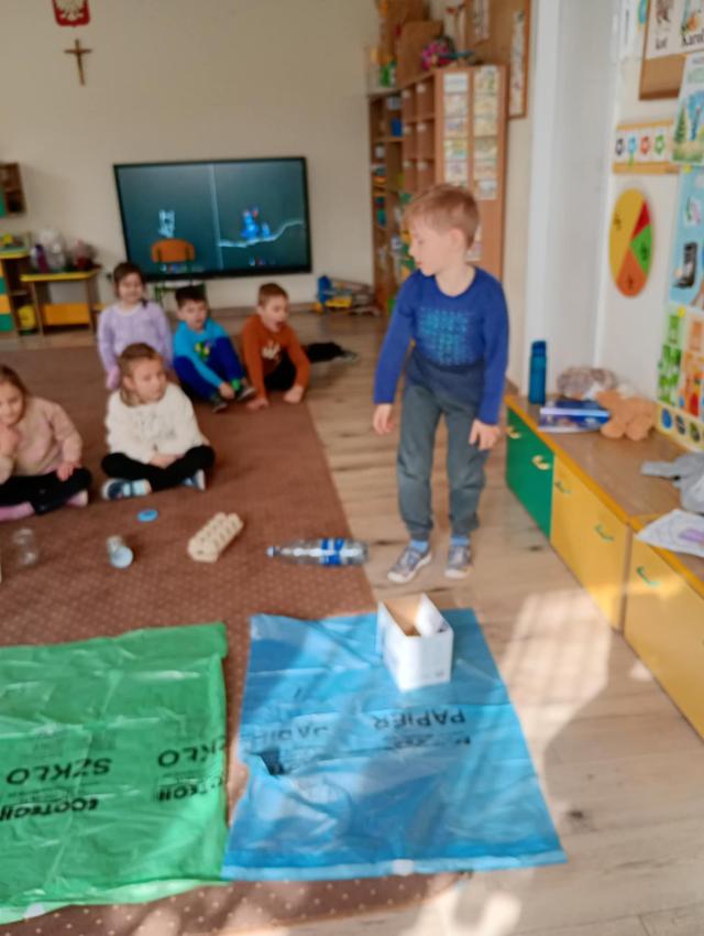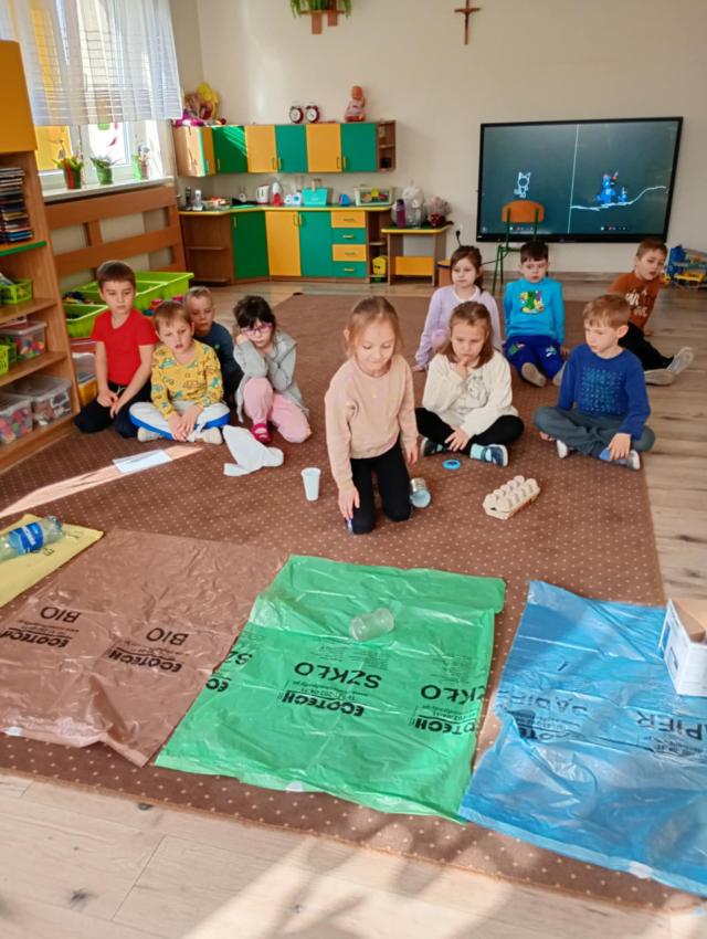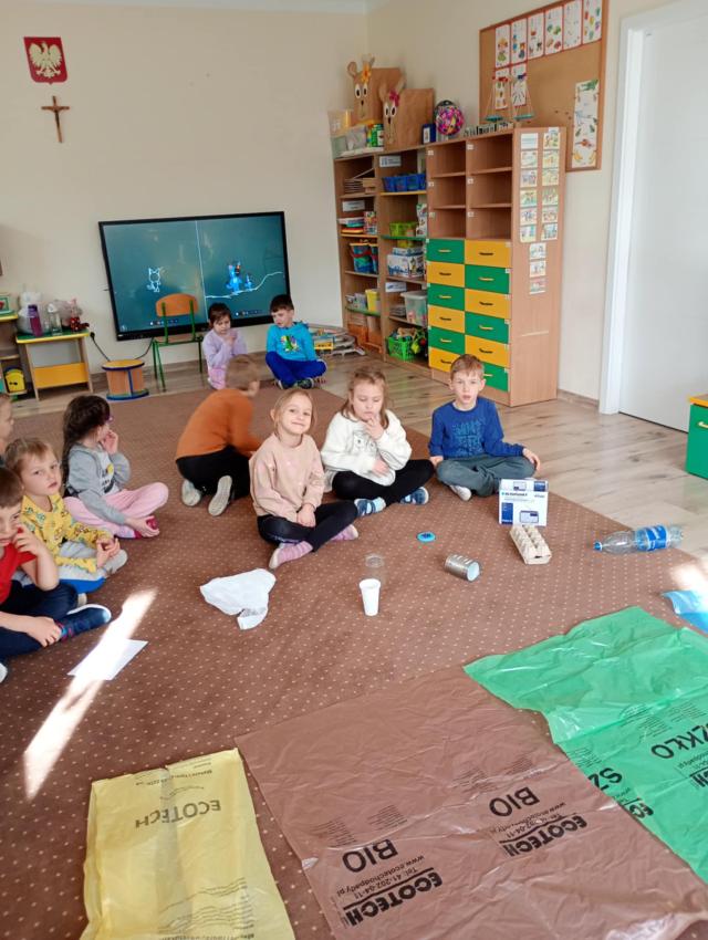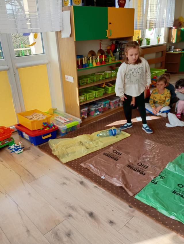 W grupie Odkrywcy zostały przeprowadzone zajęcia pro-ekologiczne - o tym, jak segregować śmieci, pt: Mali Ekolodzy.