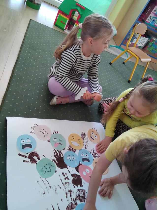 W ramach projektu " Paluszkowe rozśpiewanki" przedszkolaki z grupy Misie rozmawiały o emocjach i wykonały drzewo emocji.