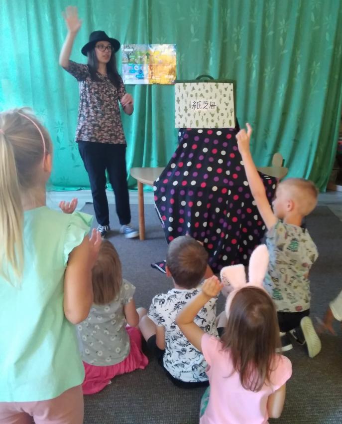 i chętnie uczestniczyły w zabawie ruchowej "Słońce świeci - deszczyk pada".