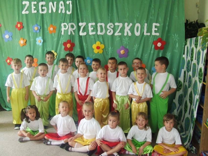 W czerwcu dzieci z oddziału II (starszaki) pożeganły dzieci, które w roku szkolnym 2017/2018 rozpoczną naukę w szkole. Nauczycielki wspólnie z dziećmi przygotowały pożegnalny program artystyczny. Pani Dyrektor dzieciom odchodzącym do szkoły wręczyła dyplomy ukończenia przedszkola oraz upominki.